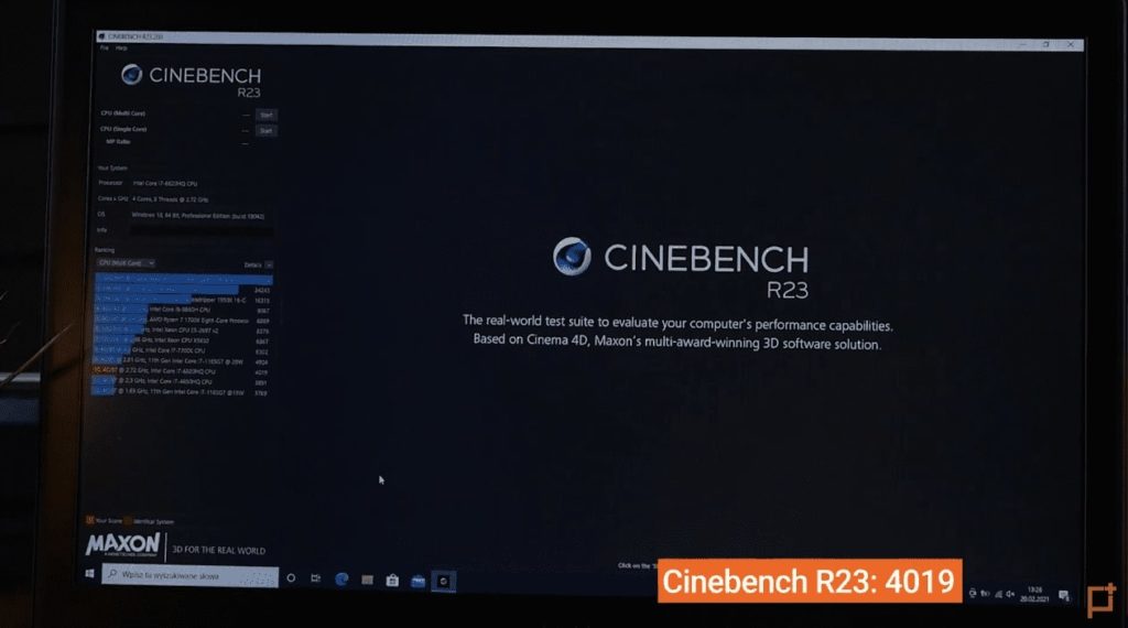 W jaki sposób te dane przekładają się na faktyczne możliwości pracy sprzętu? Czas to zweryfikować. Zaczynamy od standardowego testu w nowym Cinebenchu R23.